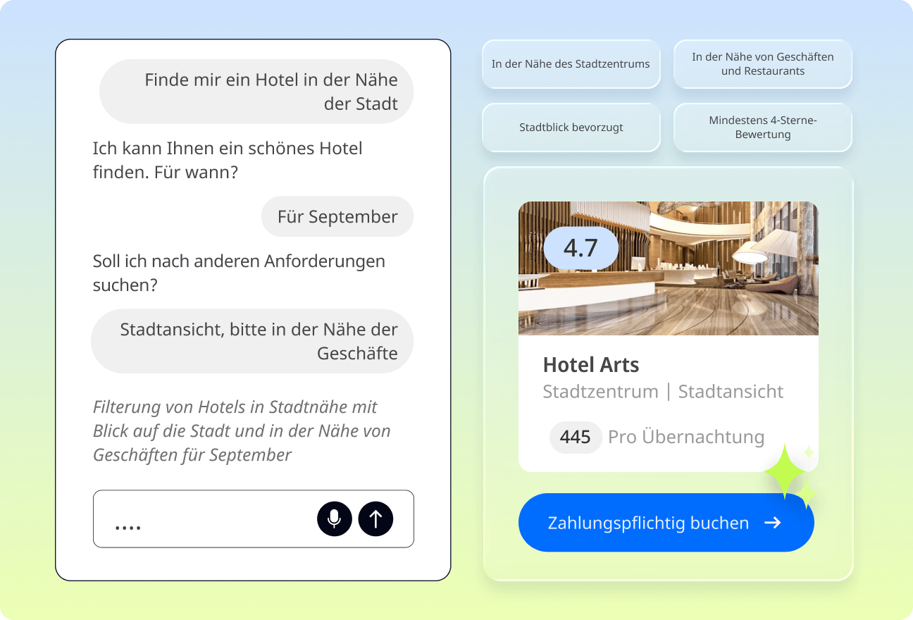 Verwandeln Sie die KI-Suche in Direktbuchungen.
