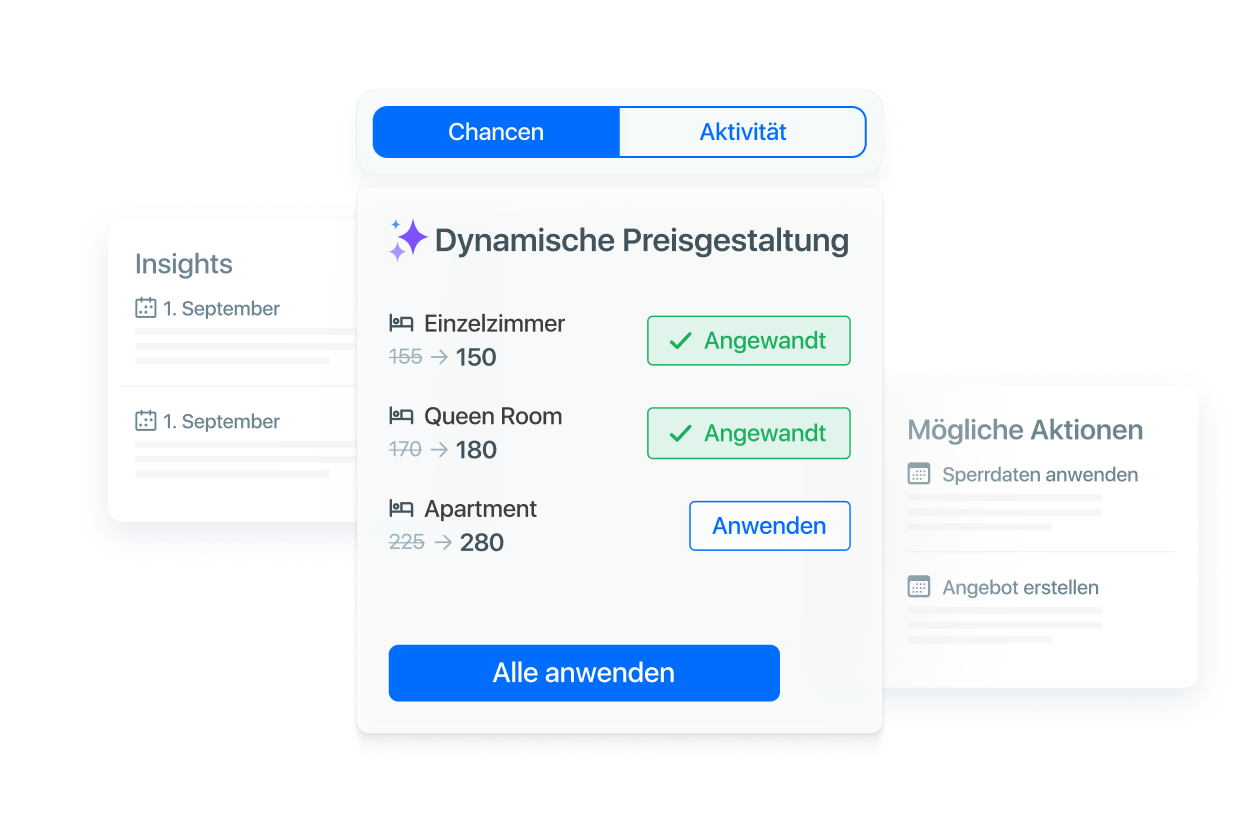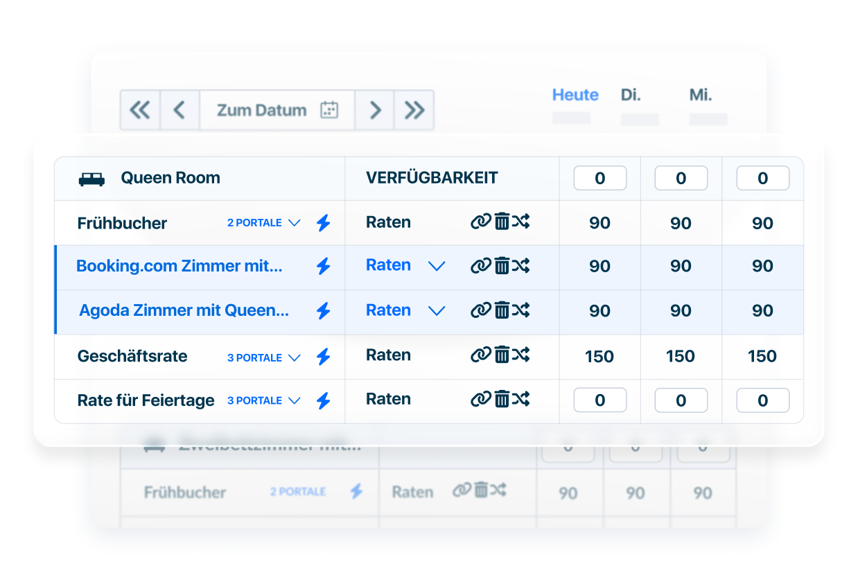 Synchronisieren Sie sofort Ihre Preise und Verfügbarkeiten über 450+ globale Buchungskanäle.