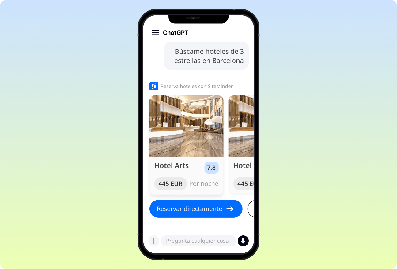 La IA está transformando la forma en que los viajeros encuentran y reservan hoteles. Avanza rápido y nosotros también. SiteMinder, la plataforma de ejecución más fiable del sector, ahora conecta tu alojamiento a las plataformas de IA que ya usan tus huéspedes, de forma que puedan descubrirte y reservar contigo, y tú puedas aprovechar esa demanda.