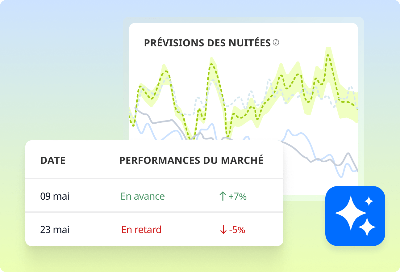 SiteMinder iQ vous fournit un résumé de vos performances et des rapports de marché dès que vous vous connectez, afin que vous sachiez immédiatement où vous concentrer et quoi faire ensuite.