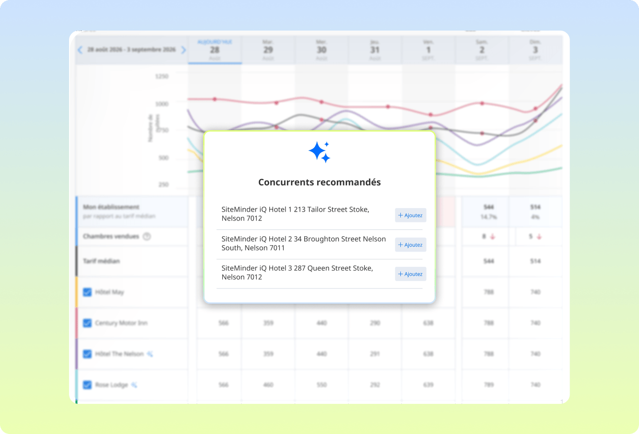 SiteMinder iQ analyse en continu votre marché et affine dynamiquement votre groupe de concurrents en fonction des attributs de votre établissement.