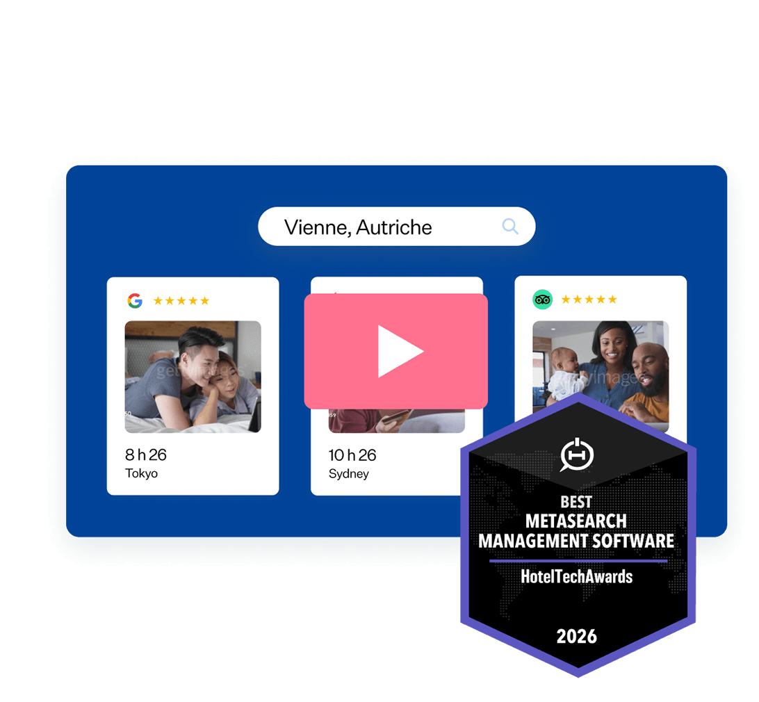 75 % des voyageurs commencent leurs recherches d’hôtels sur un metasearch. Il s’agit donc d’une piste à ne pas négliger. Les métamoteurs sont un excellent moyen pour les voyageurs de comparer les hôtels d’un seul coup d’œil et constituent un outil très utile pour les hôtels qui cherchent à générer plus de réservations directes et à se démarquer de la concurrence.