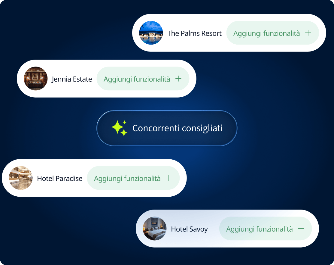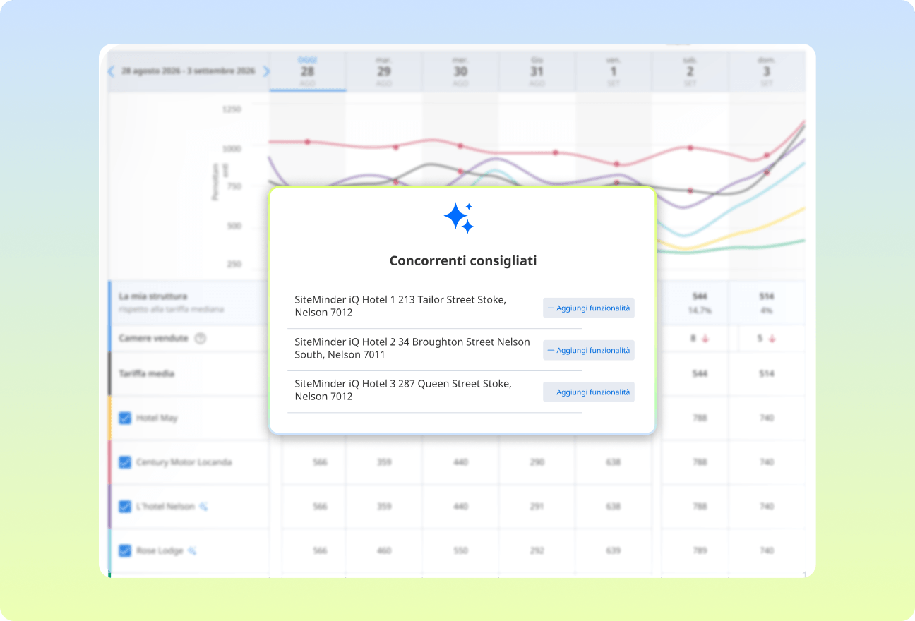SiteMinder iQ analizza continuamente il tuo mercato e affina dinamicamente il set di concorrenti in base alle caratteristiche della tua struttura.