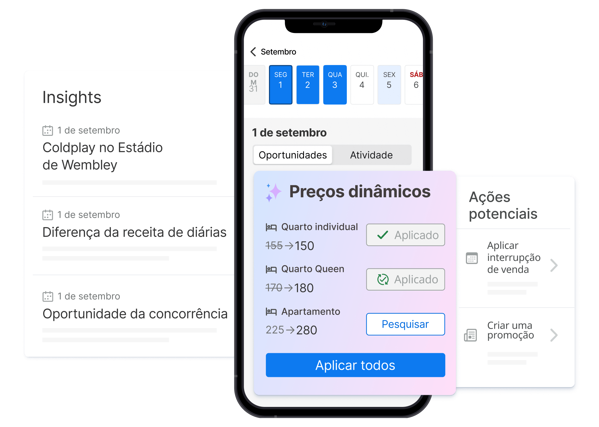 Deixe a complexidade por nossa conta. Receba recomendações de preços personalizadas com base no desempenho do seu estabelecimento e do mercado em tempo real, enviadas diretamente para si.