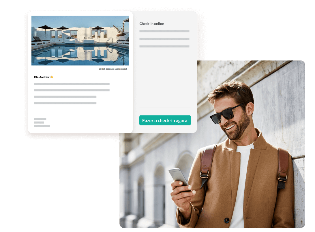 Configure e-mails automáticos para todas as fases da jornada do seu hóspede e ganhe tempo precioso para gerir o seu estabelecimento.
