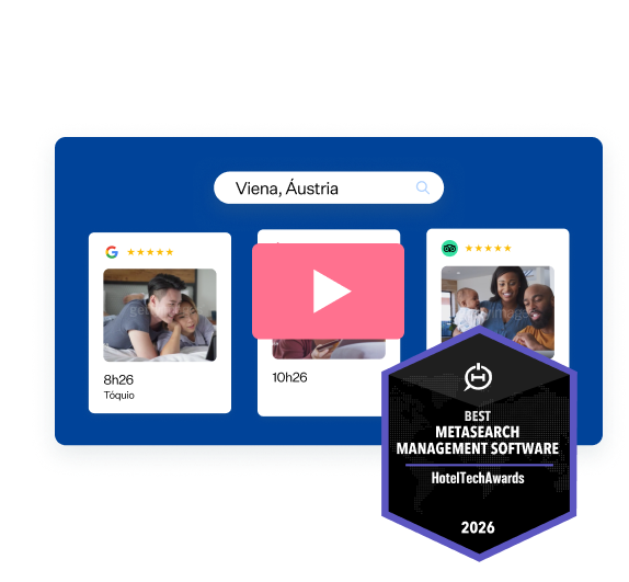 75% dos viajantes começam a sua pesquisa por alojamentos através da metapesquisa. É uma ferramenta essencial para aumentar reservas diretas e ultrapassar a concorrência.