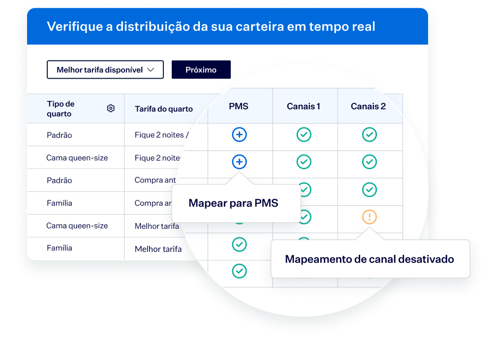 Sincronize automaticamente os dados de quartos e tarifas com a Booking.com e outros canais de distribuição importantes como nunca antes.
