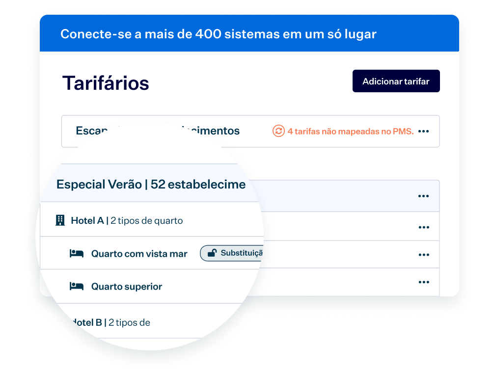 Simplifique e otimize a gestão de tarifas e distribuição em vários estabelecimentos através de uma interface única e poderosa
