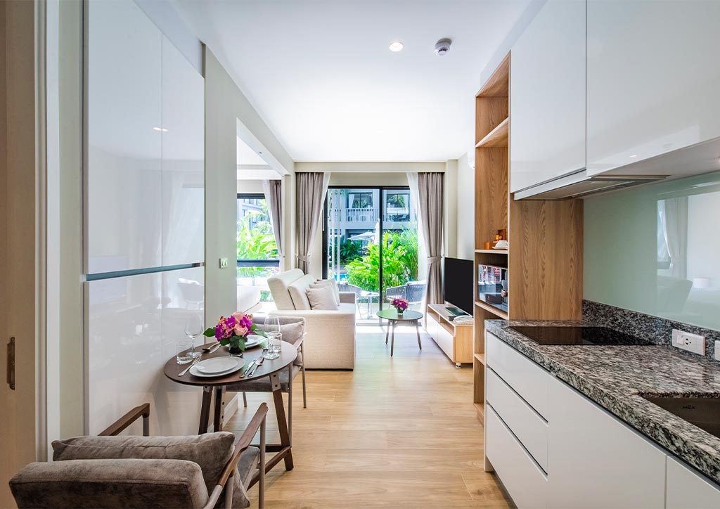 ทุกห้องพักมาพร้อมกับการตกแต่งภายในที่หรูหรา มีพื้นที่ห้องครัวที่ใช้งานได้จริง พร้อมวิวภูเขาหรือวิวสระว่ายน้ำ เพื่อให้ลูกค้ารู้สึกอบอุ่นและผ่อนคลายเหมือนอยู่ที่บ้านขณะเข้าพักในสถานที่แห่งนี้
