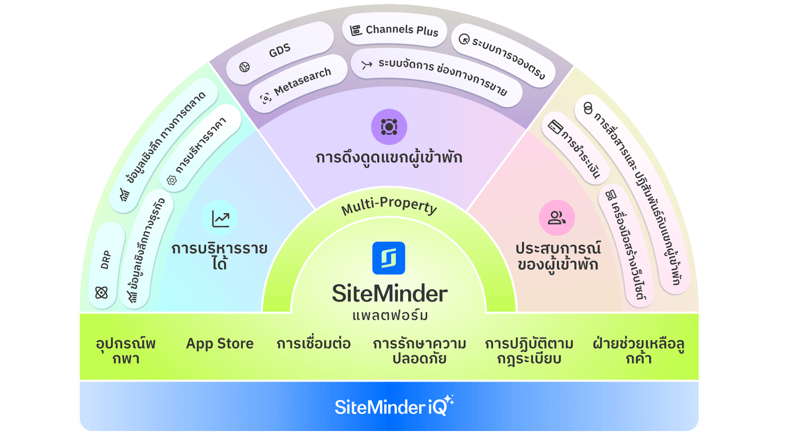 SiteMinder ขับเคลื่อนด้วยข้อมูลโรงแรมที่ไม่มีใครเทียบได้ และระบบนิเวศแบบเปิดที่ใหญ่ที่สุดในโลก โดยนำเทคโนโลยี AI มาใช้ เพื่อกำหนดนิยามการรับผู้เข้าพัก และการจัดการรายได้แบบใหม่ ช่วยให้โรงแรมของคุณเป็นที่ต้องการในช่องทางต่างๆ มากขึ้น โดยใช้ความพยายามน้อยลง