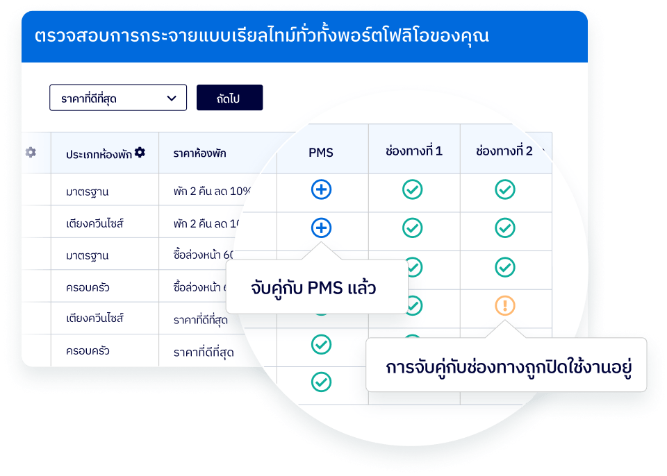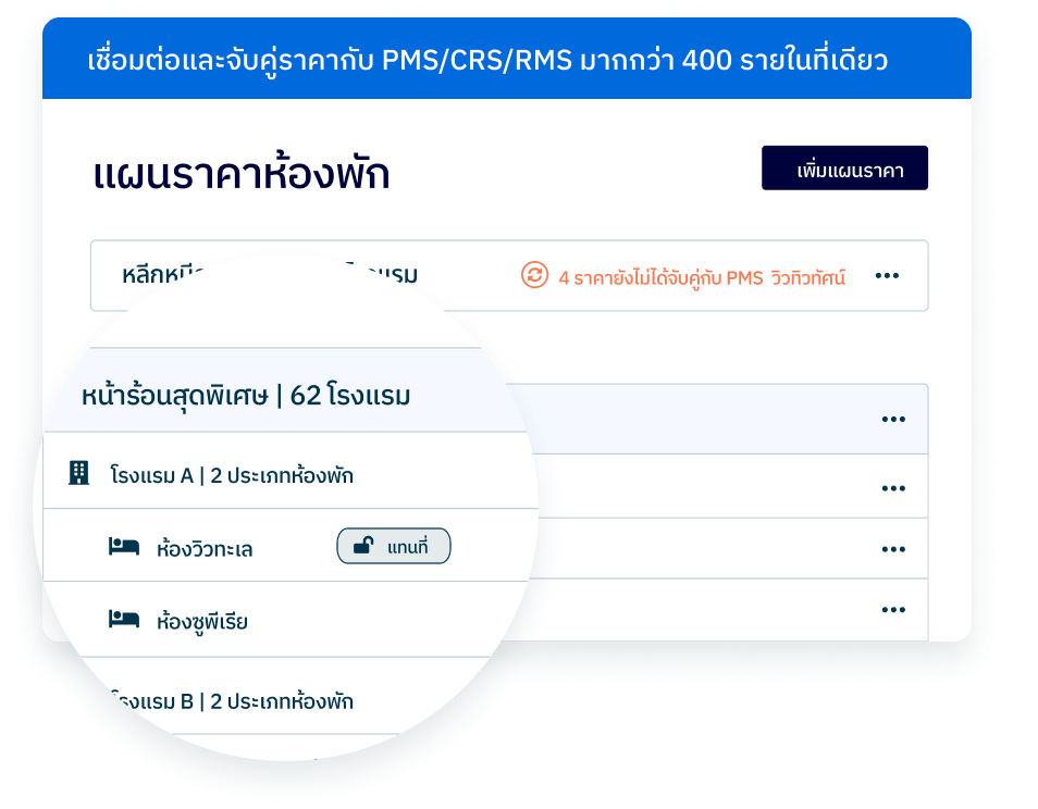 ซิงค์ข้อมูลห้องพักและราคาค่าบริการกับ booking.com และช่องทางการจัดจำหน่ายหลักอื่นๆ โดยอัตโนมัติ ในแบบที่ไม่เคยมีมาก่อน
